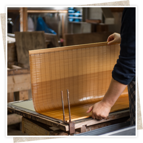 In this operation, the craftsman will strip and peel each piece and stick it on a drying board. Then dry it with a brush.